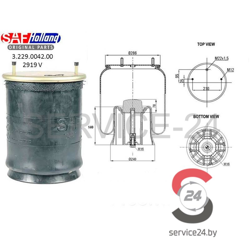 Главная Подвеска Пневморессора (пневмоподушка) SAF 2919V (пластиковый стакан, 2шп. М12+2+1 отв.М22*1,5) SA3229004200