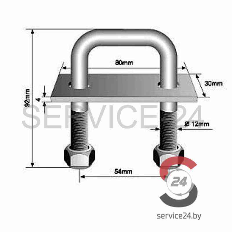 В наличии: Скоба крепления груза в пол L=54mm, M12, H=92 (259961) 18-04-00-0959